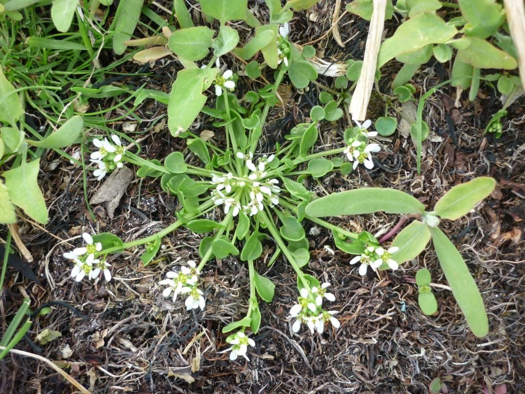 This is a seashore plant, Cochlearia officinalis, which is called scurvy-plant in Swedish. It's rich in vitamin C, and apparently sailors ate it so they wouldn't get scurvy.